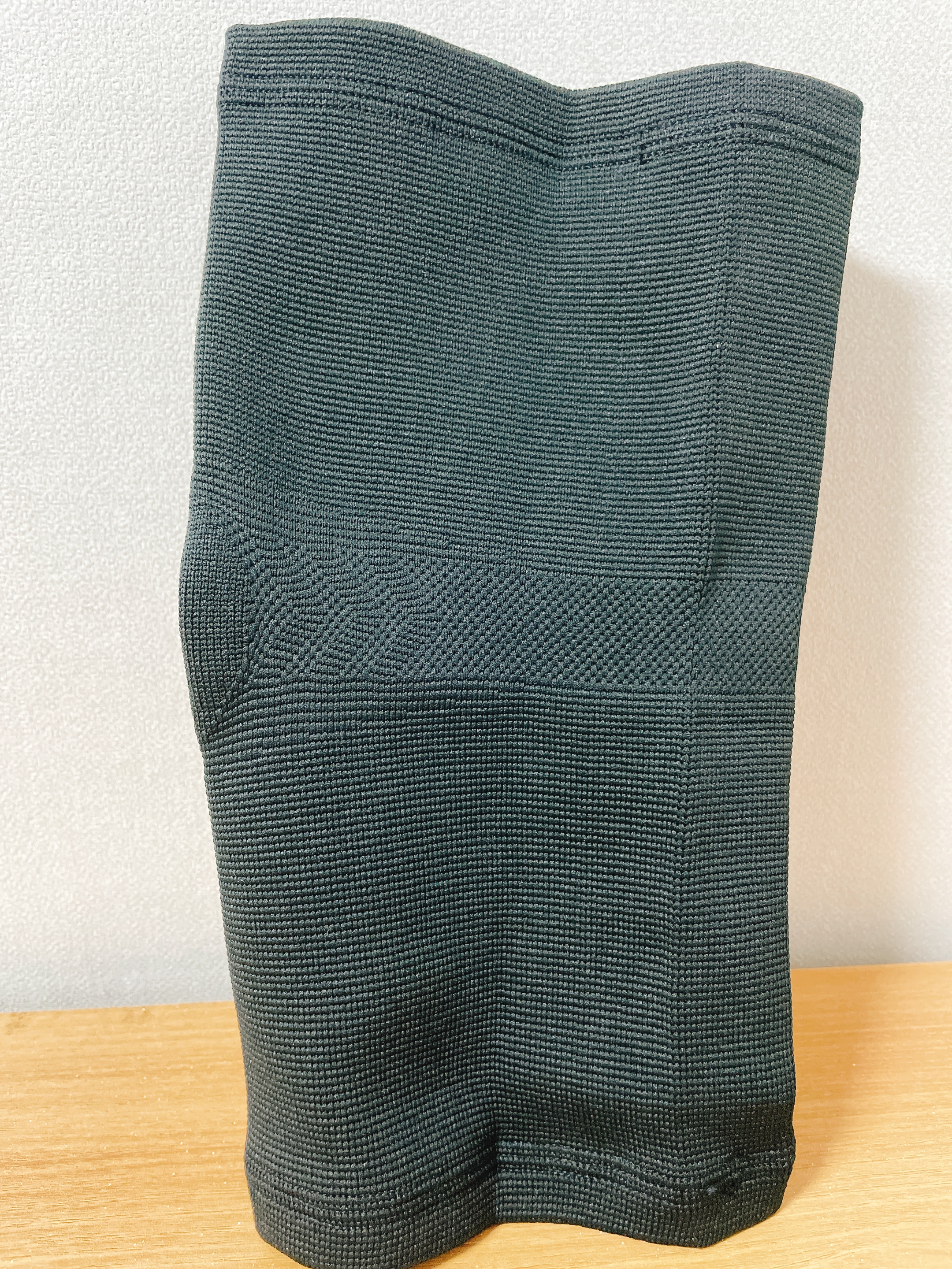 무릎보호대인만큼 무릎부분에 좀 더 연한 재질의 고무라인이 둥글게 되어 있어서 무릎의 형태를 잘 잡아 주게 되는 것 같습니다.